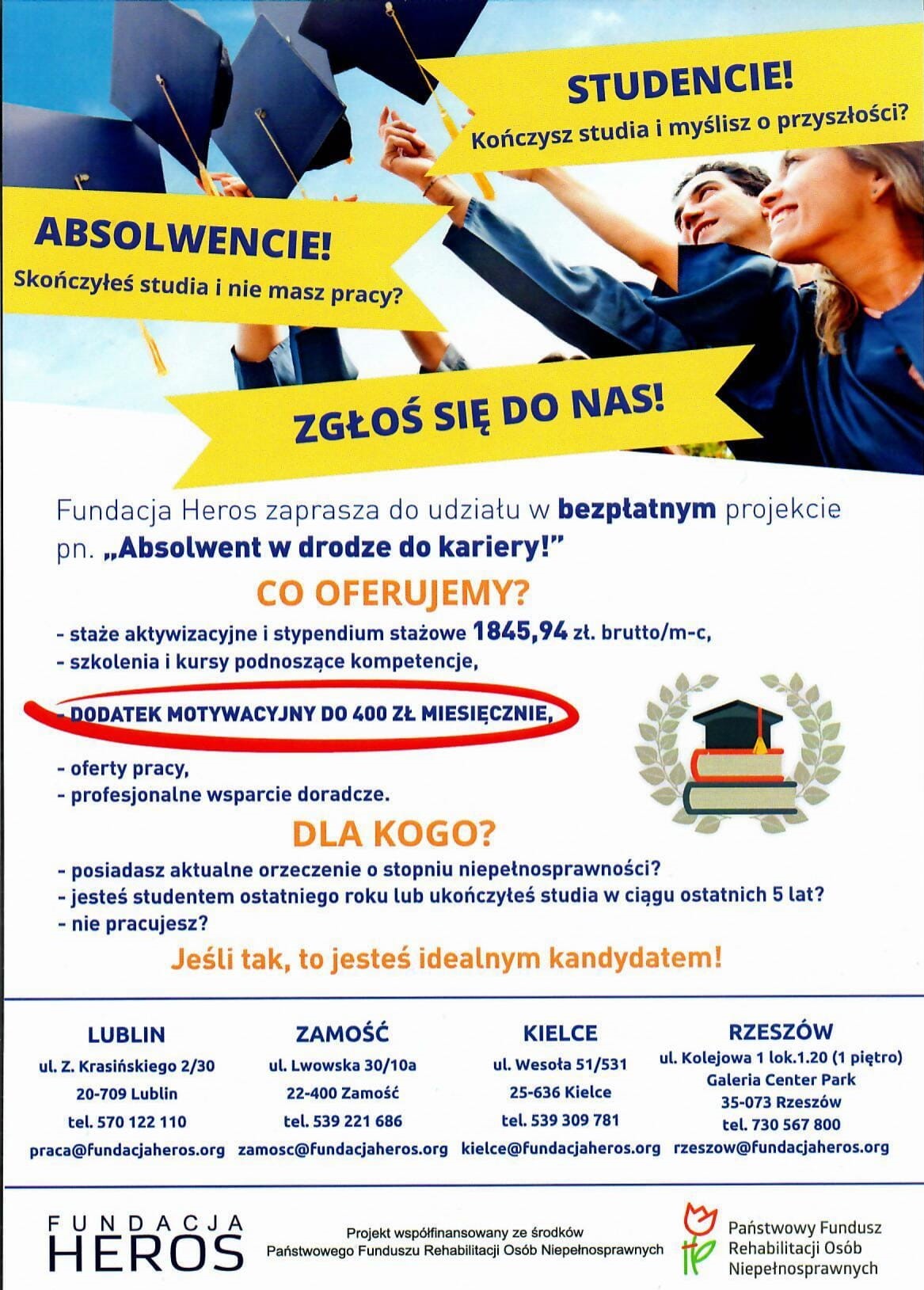 Zapraszamy Państwa do zapoznania się z ofertą projektu Fundacji Heros „Absolwent w drodze do kariery”.