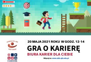 Informujemy, że w dniu 20 maja 2021 roku odbędzie się czwarta edycja spotkania pod nazwą „Gra o karierę”, którą organizuje Akademickie Biuro Karier UJK w Kielcach. Zapraszamy do zapoznania się ze szczegółami na stronie wydarzenia.