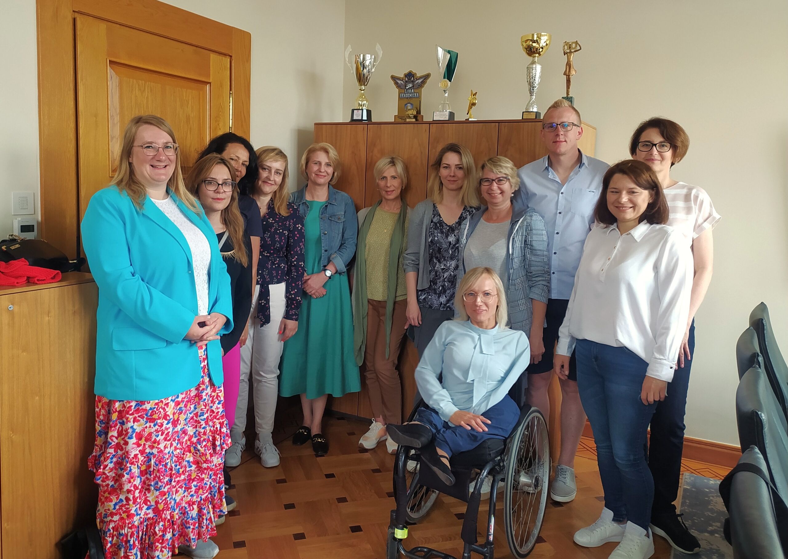 W ramach realizacji projektu „Uniwersytet otwarty na potrzeby osób z niepełnosprawnościami” pracownicy naszej Uczelni uczestniczyli w wizycie studyjnej na Uniwersytecie imienia Adama Mickiewicza w Poznaniu. Podczas pobytu mieli możliwość uczestniczenia w spotkaniu z Prorektor do spraw studenckich i kształcenia prof. Joanną Wójcik, a także zapoznania się z działalnością Biura Wsparcia Osób z Niepełnosprawnościami, w tym z racjonalnymi dostosowaniami procesu kształcenia dla studentów z niepełnosprawnościami przedstawionymi przez panią Annę Rutz – Pełnomocniczką Rektora UAM ds. Osób z Niepełnosprawnościami i jednocześnie Przewodniczącą Komisji ds. Wyrównywania Szans Edukacyjnych przy Konferencji Rektorów Akademickich Szkół Polskich.